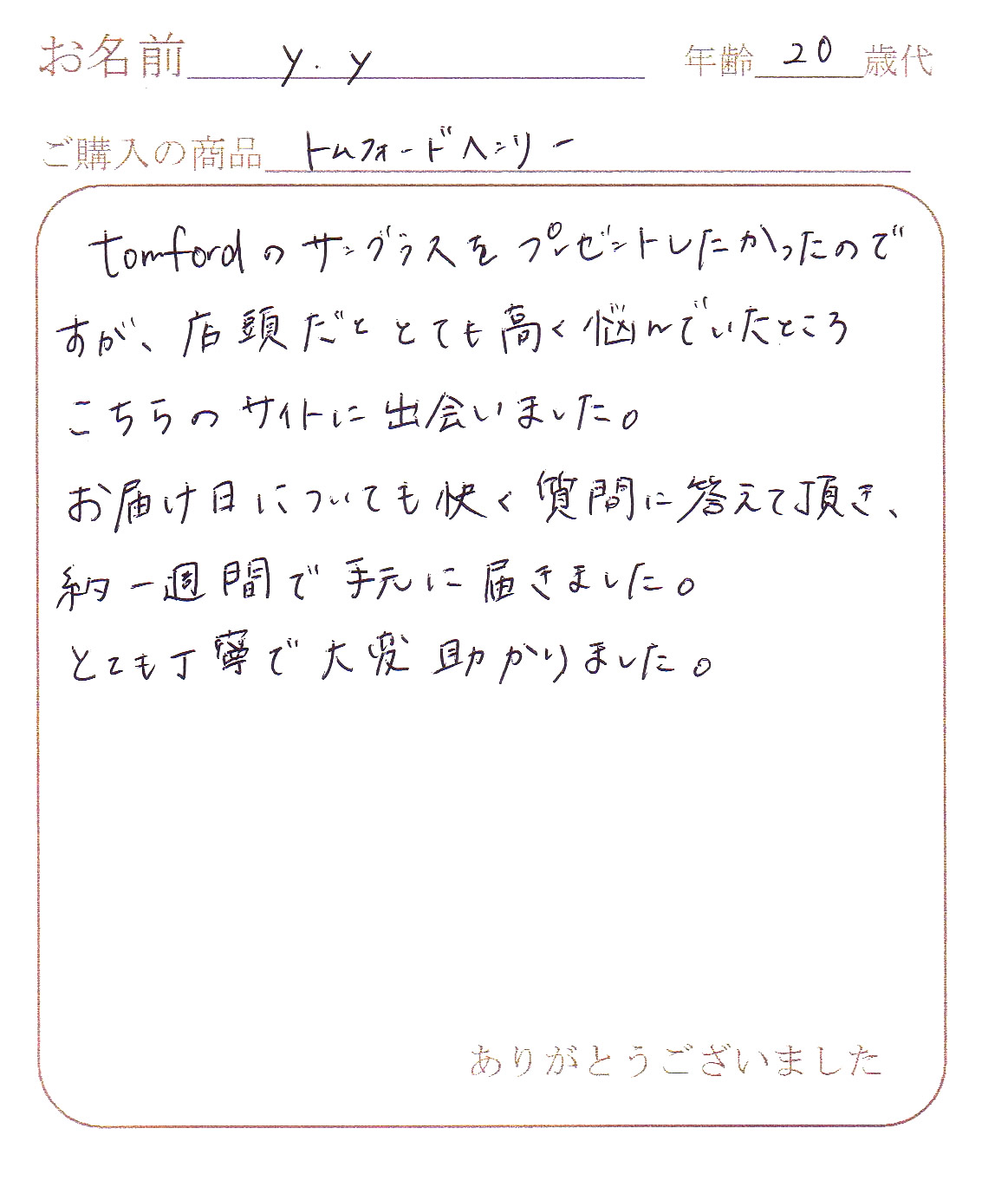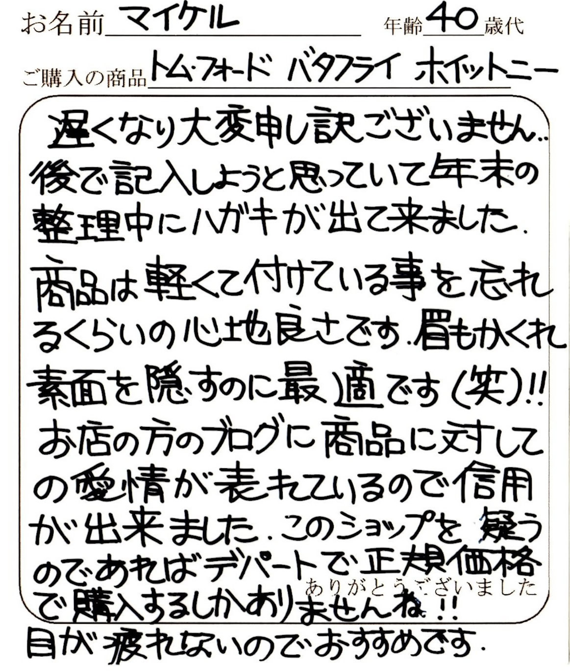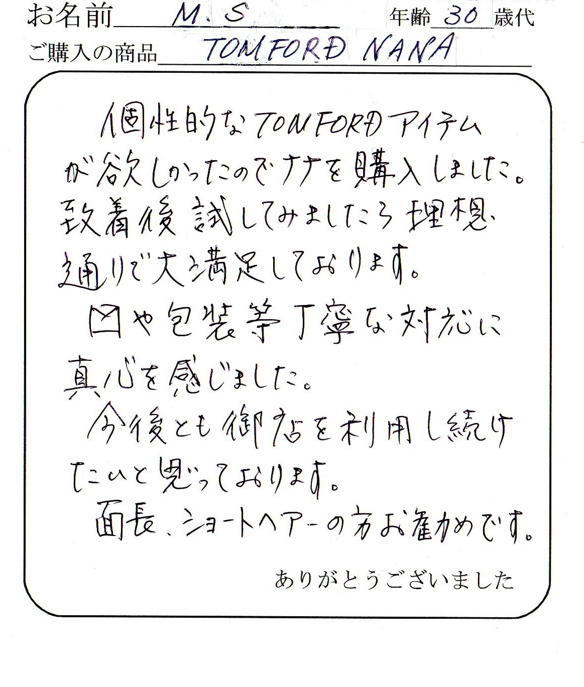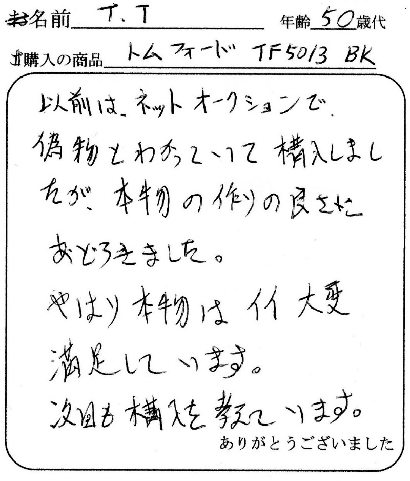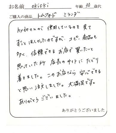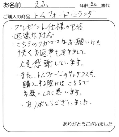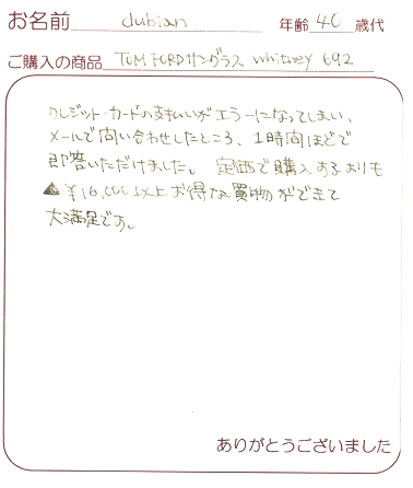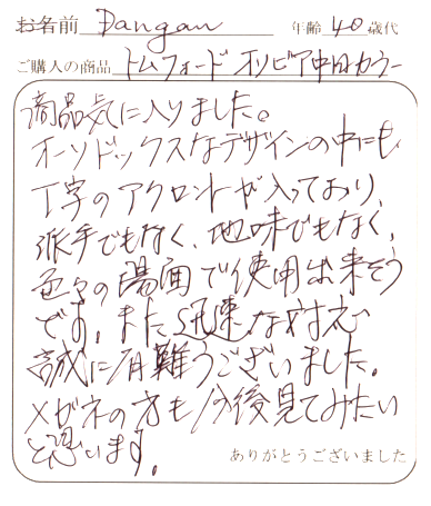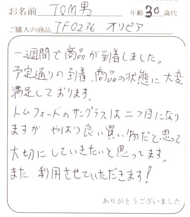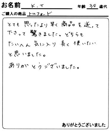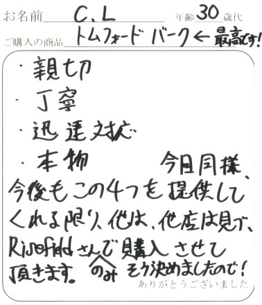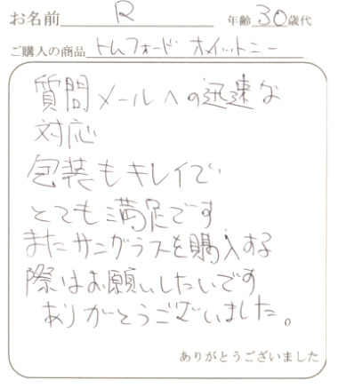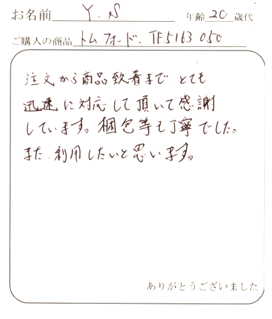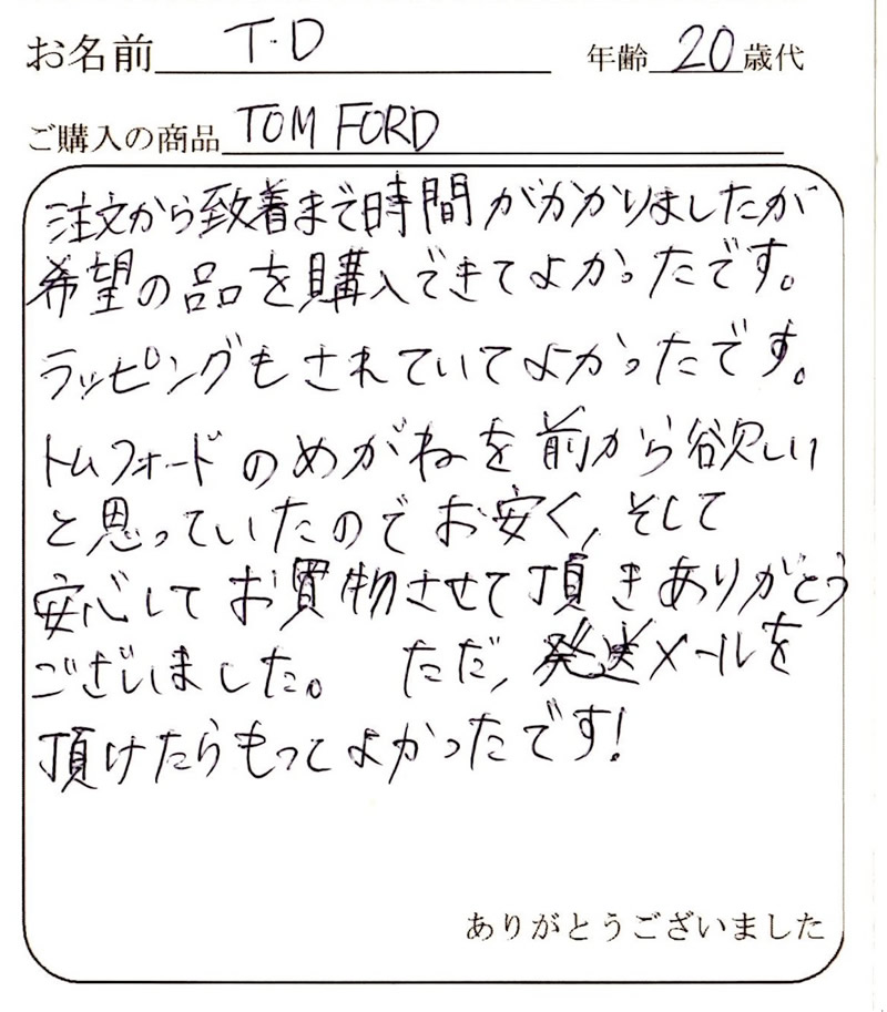 またTOM FORDを購入するときはお願いしますので宜しくお願いします。