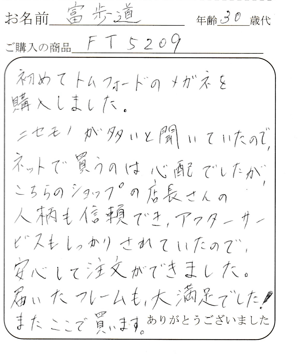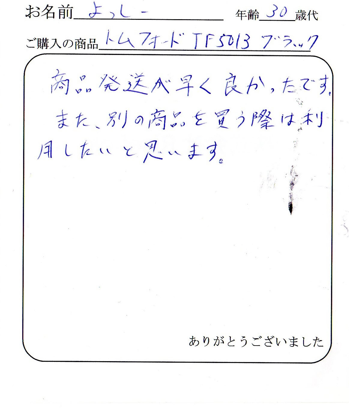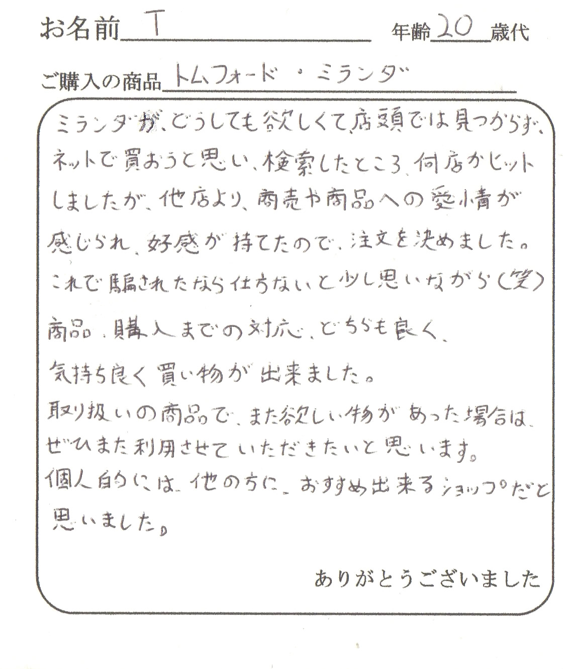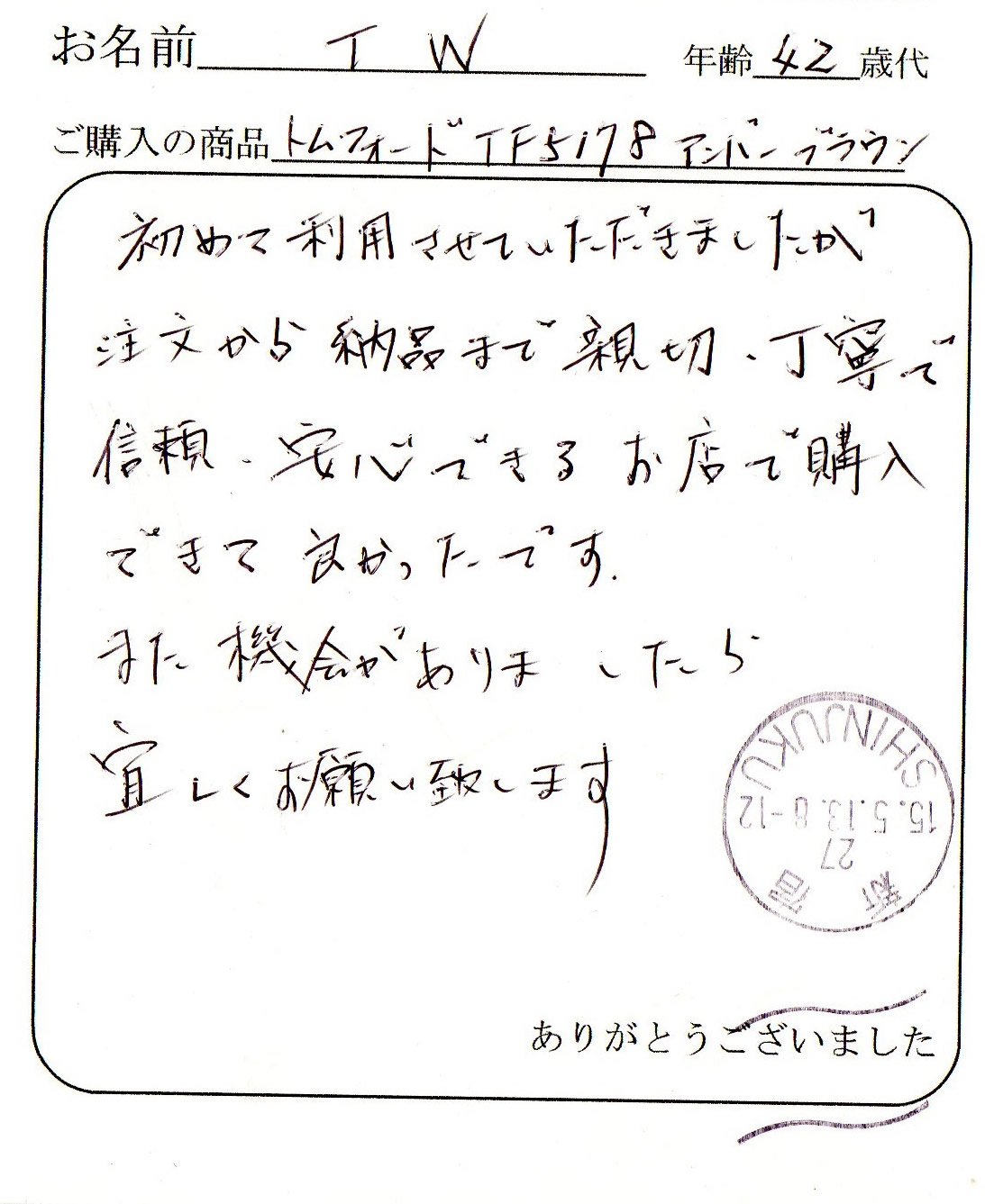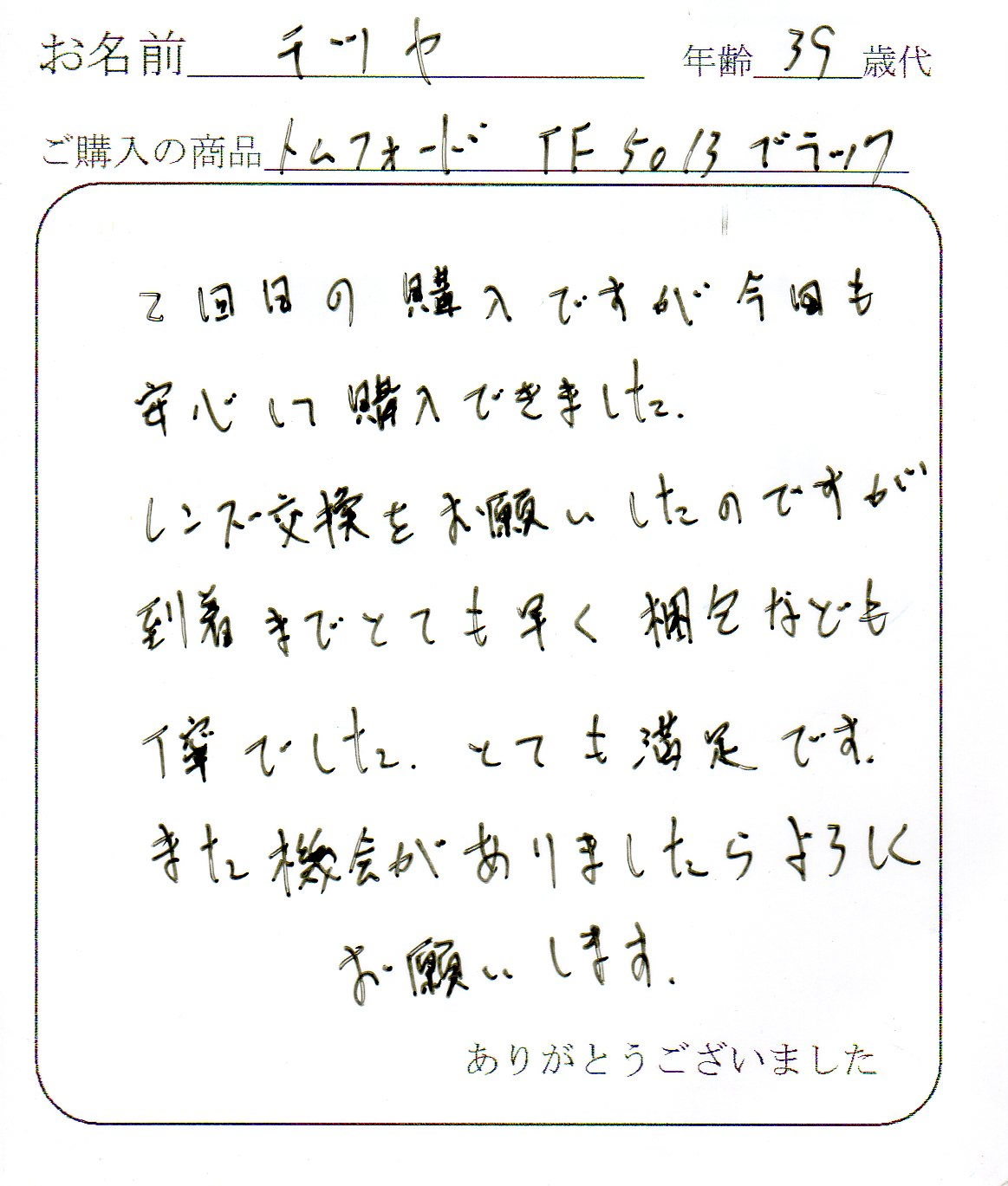 またTOM FORDを購入するときはお願いしますので宜しくお願いします。