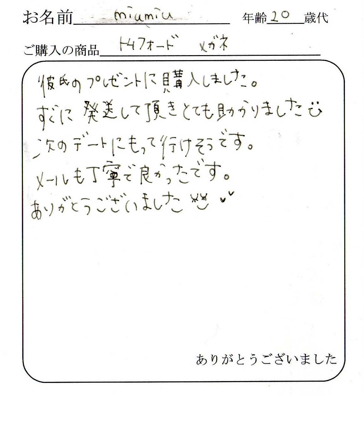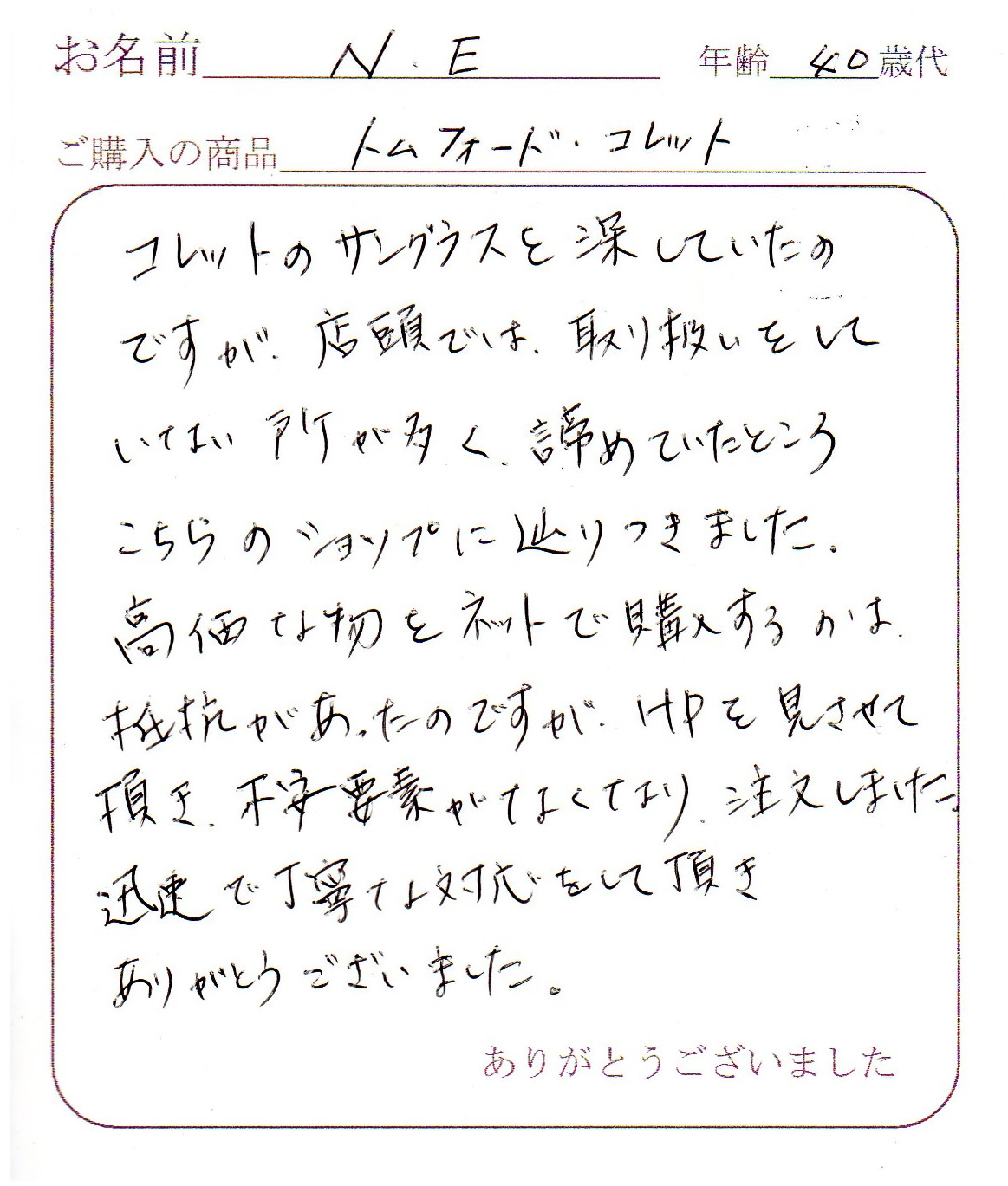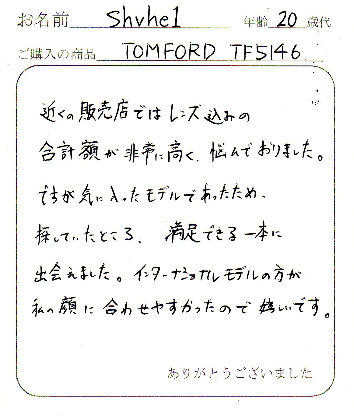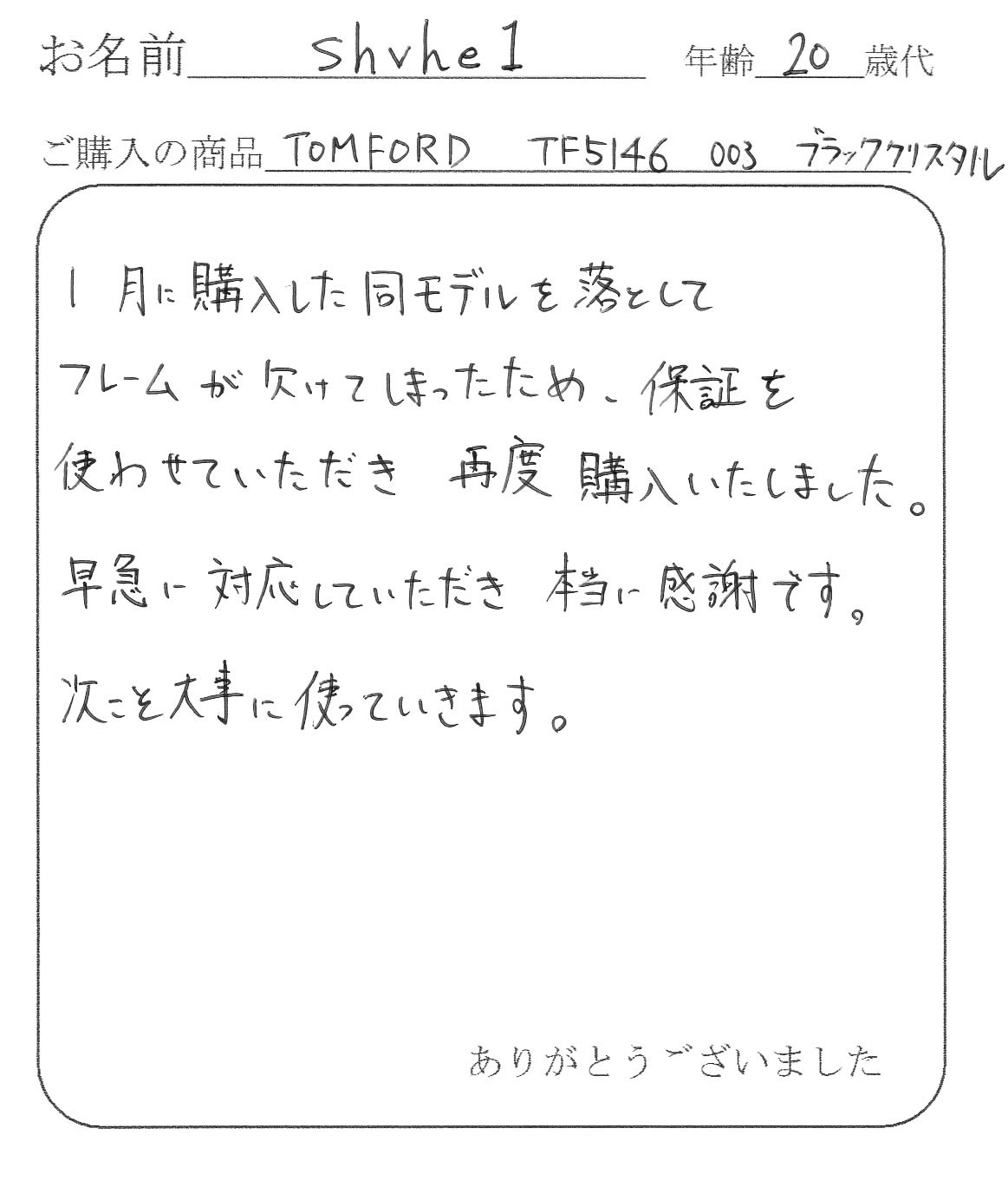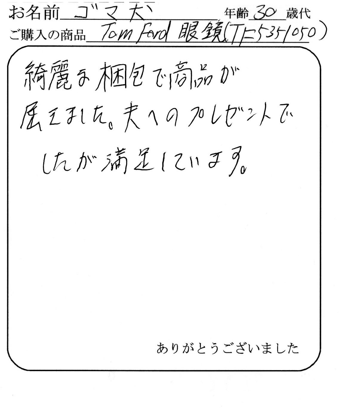 またTOM FORDを購入するときはお願いしますので宜しくお願いします。