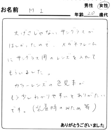 P.S.店長愛用のサングラスの写真が良かったです。参考になりました。