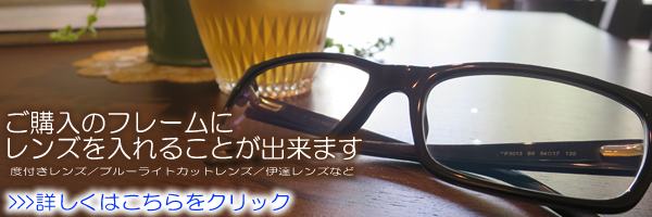 ※ フレームにはブランドのロゴ付きのダミーレンズが付きます。ご使用になられるには、レンズと一緒に購入していただくか、お近くのメガネ屋さんでレンズ交換をしてください。